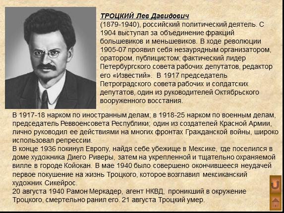 1) Кто был главным политическим соперником Сталина в 20-х гг.?