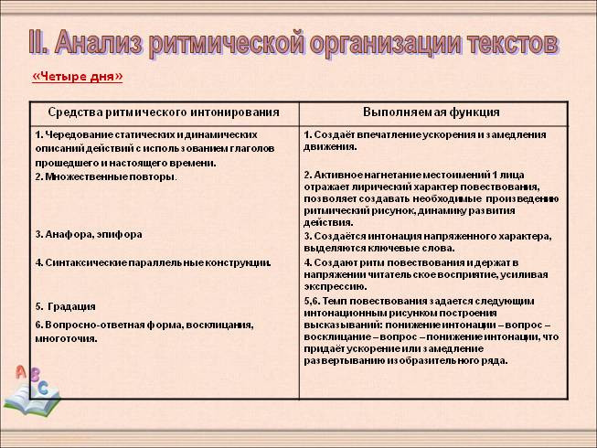 II. Анализ ритмической организации текстов, показывающей творческие установки писателя