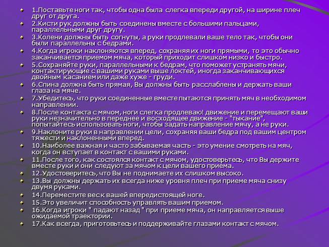 2. Совершенствовать технику приема и передачи мяча сверху двумя руками.