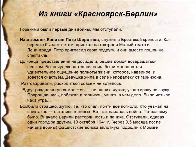 Наш земляк Капитан Петр Шерстнев, служил в Брестской крепости. Как нередко бывает летом, приехал на гастроли Малый театр из Ленинграда. Петр пригласил свою подругу, и они вместе пошли на спектакль.