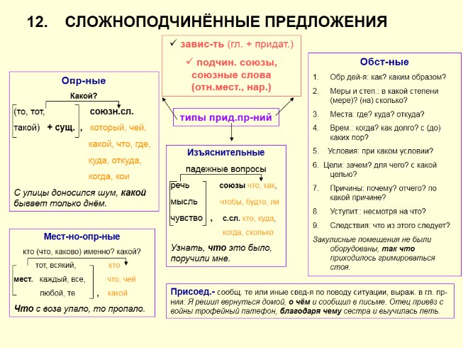 12. СЛОЖНОПОДЧИНЁННЫЕ ПРЕДЛОЖЕНИЯ