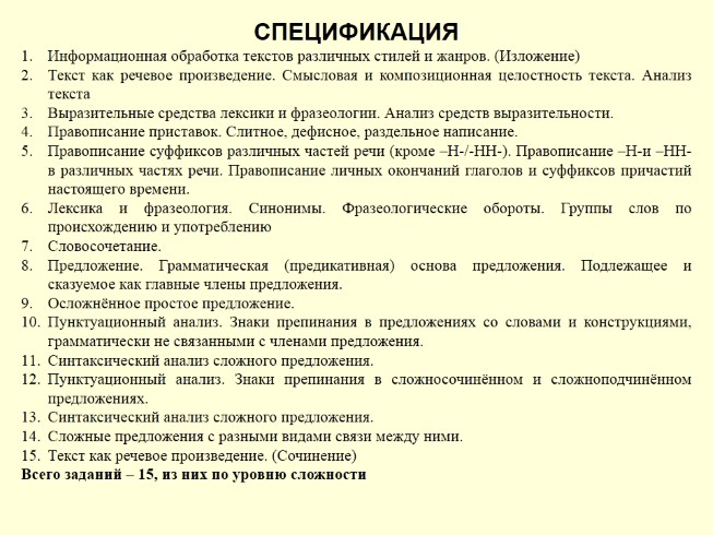 Всего заданий – 15, из них по уровню сложности