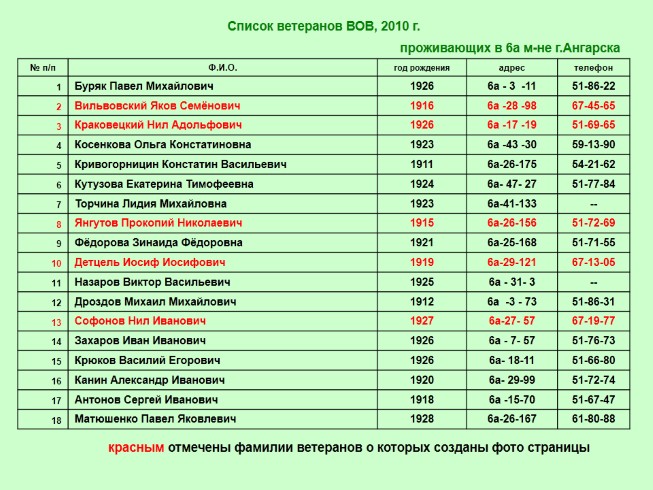 красным отмечены фамилии ветеранов о которых созданы фото страницы красным отмечены фамилии ветеранов о которых созданы фото страницы красным отмечены фамилии ветеранов о которых созданы фото страницы красным отмечены фамилии ветеранов о которых созданы фото страницы