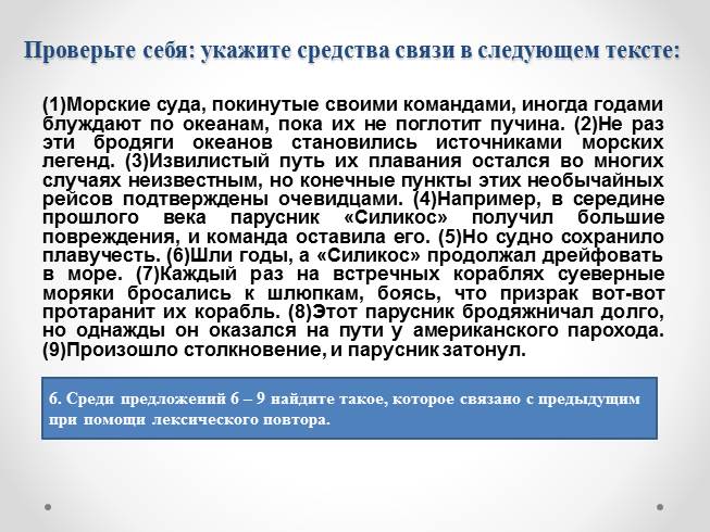 ЕГЭ В7 «Средства связи предложений в тексте» Теория и практика, слайд 6