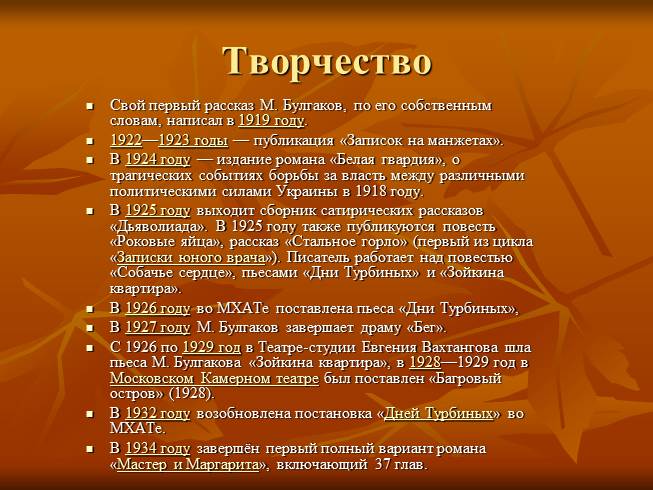 Жизнь и творчество М.А. Булгакова