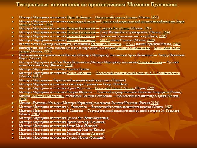 Театральные постановки по произведениям Михаила Булгакова