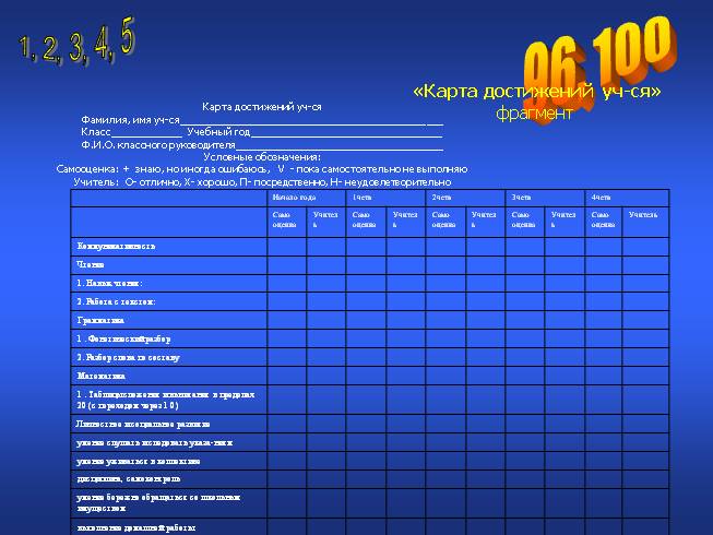 «Карта достижений уч-ся» фрагмент