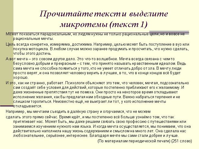 Прочитайте текст и выделите микротемы (текст 1)