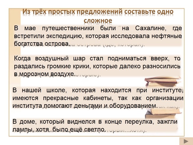 В мае путешественники были на Сахалине. Здесь они встретили экспедицию. Экспедиция исследовала нефтяные богатства острова (где, которая).