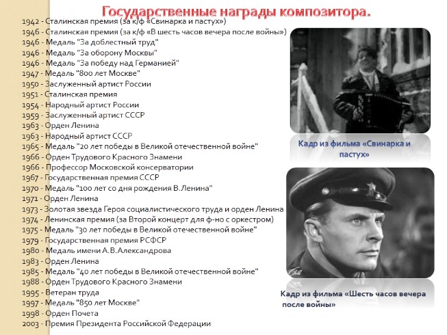 Государственные награды композитора.