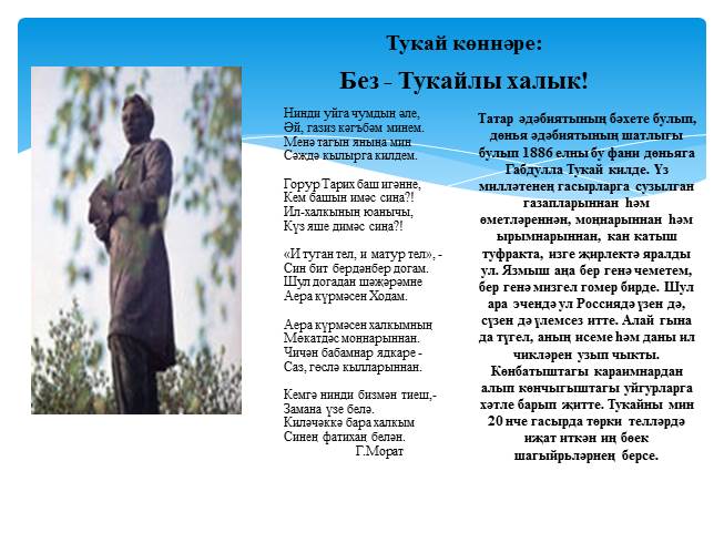 Татар әдәбиятының бәхете булып, дөнья әдәбиятының шатлыгы булып 1886 елны бу фани дөньяга Габдулла Тукай килде. Үз милләтенең гасырларга сузылган газапларыннан һәм өметләреннән, моңнарыннан һәм ырымнарыннан, кан катыш туфракта, изге җирлектә яралды ул. Язмыш аңа бер генә чеметем, бер генә мизгел гомер бирде. Шул ара эчендә ул Россиядә үзен дә, сүзен дә үлемсез итте. Алай гына да түгел, аның исеме һәм даны ил чикләрен узып чыкты. Көнбатыштагы караимнардан алып көнчыгыштагы уйгурларга хәтле барып җитте. Тукайны мин 20 нче гасырда төрки телләрдә иҗат иткән иң бөек шагыйрьләрнең берсе.