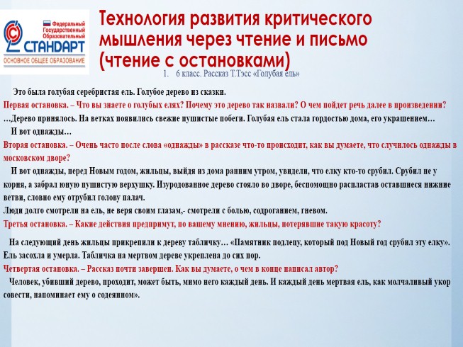 Технология развития критического мышления через чтение и письмо (чтение с остановками)