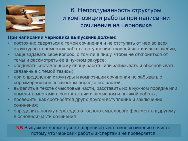 Речевое оформление сочинения и оптимальные формы работы с черновиком.