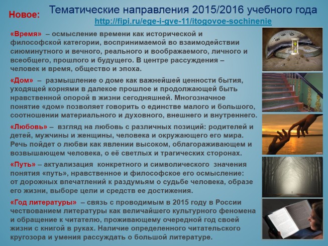 01.10.2015. «Итоговое сочинение: Тематические направления «Время», «Путь» .