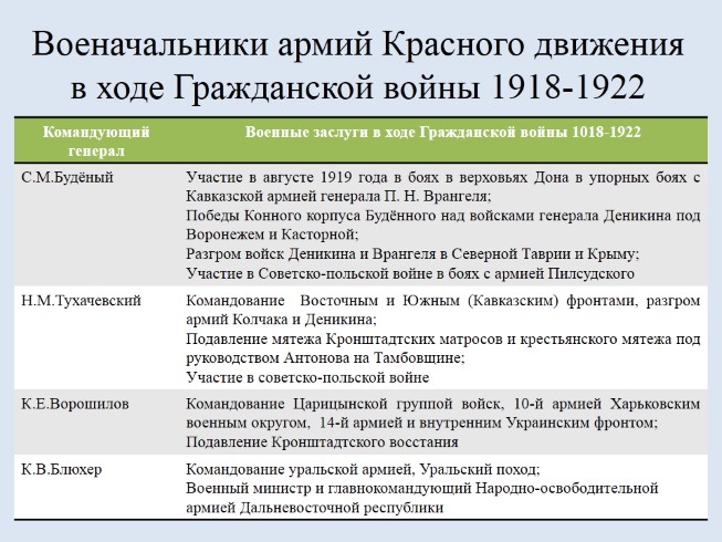 Военачальники армий Красного движения в ходе Гражданской войны 1918-1922