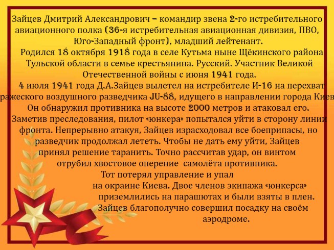Зайцев Дмитрий Александрович – командир звена 2-го истребительного