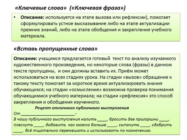 Использование современных приёмов ТРКМ, инициирующих учебную деятельность обучающихся.