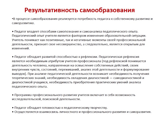 Результативность самообразования