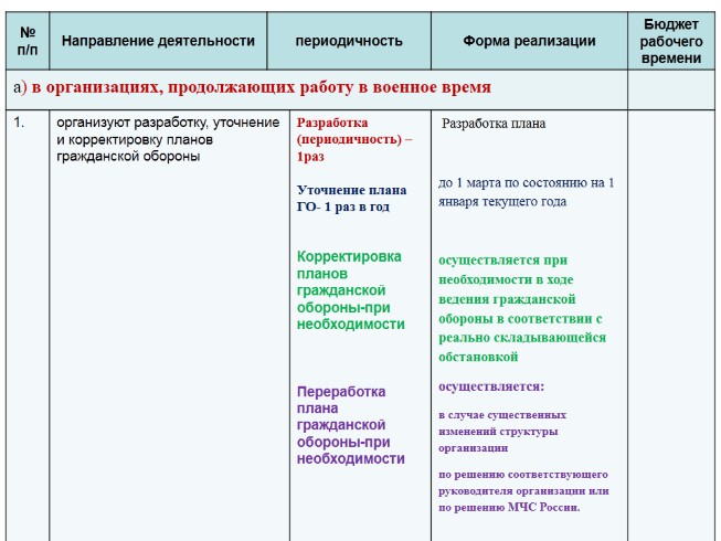 2 участвуют в планировании мероприятий по гражданской обороне муниципального образования в части касающейся; ежегодно При уточнении плана ГО и защиты населения Вашего района