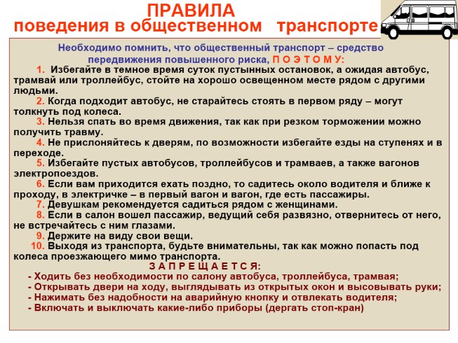 13. Инструкция по безопасному поведению в общественном транспорте.