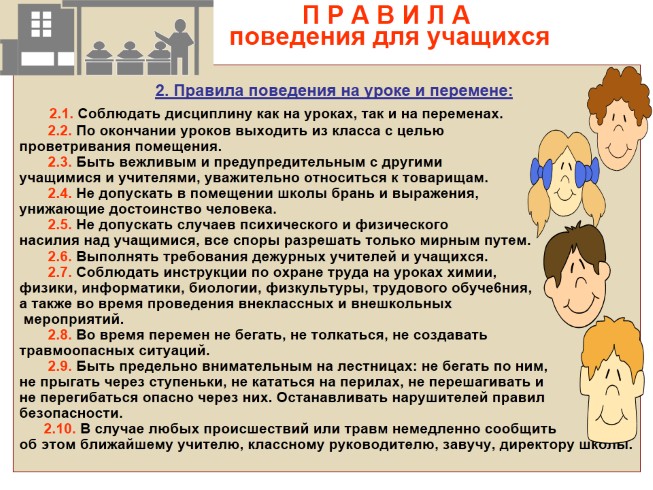 2.1. Соблюдать дисциплину как на уроках, так и на переменах.
