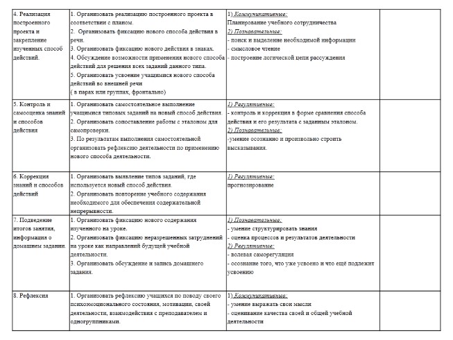 3. Усвоение новых знаний и способов действия Организовать построение проекта изучения нового знания: