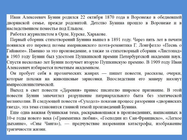 Биография И.А.Бунина (с презентацией, но коротко (5 минут)).