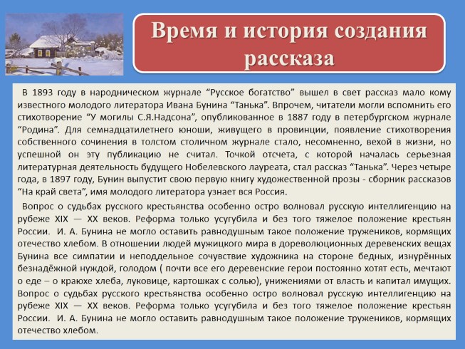 http://nsportal.ru/shkola/literatura/library/2012/01/11/zhizn-krestyan-v-rasskaze-iabunina-tanka-6-y-klass