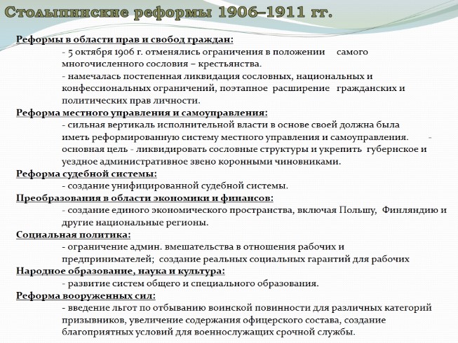 - 5 октября 1906 г. отменялись ограничения в положении самого многочисленного сословия – крестьянства.