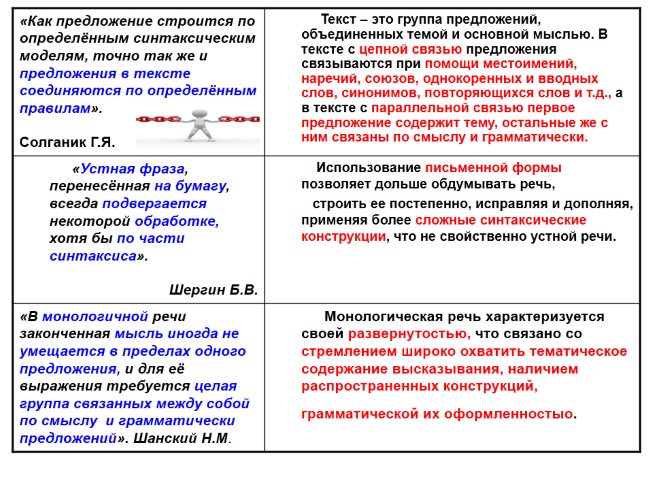 «Как предложение строится по определённым синтаксическим моделям, точно так же и предложения в тексте соединяются по определённым правилам».