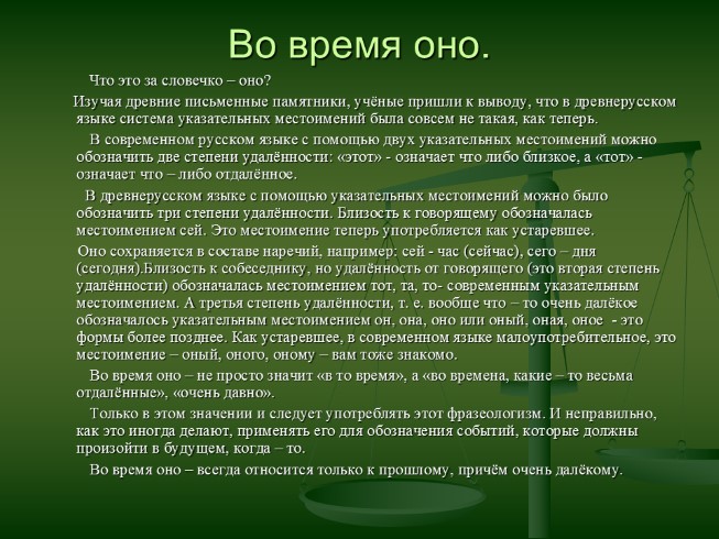Изучая древние письменные памятники, учёные пришли к выводу, что в древнерусском языке система указательных местоимений была совсем не такая, как теперь.