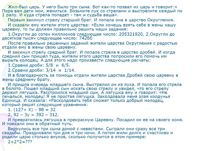После правильно решенных заданий жители царства Округления с радостью отдали ему в жены свою царевну.