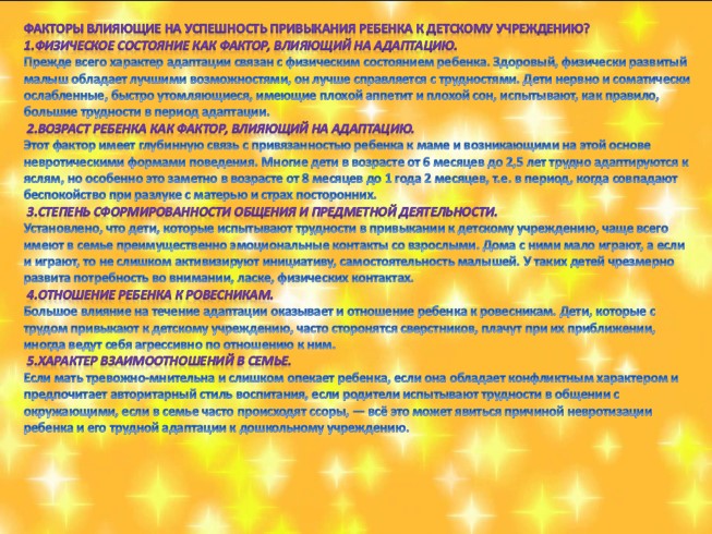 Факторы влияющие на успешность привыкания ребенка к детскому учреждению?