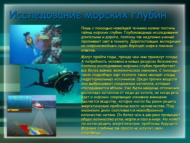 Не знаю, есть ли занятие более интересное, чем исследование морских глубин, ведь даже сейчас не только большинство тайн океана остаются загадками для людей, но и далеко не во всех частях океана побывал человек. Каждый год ученые открывают все новые и новые виды неведомых прежде животных и растений.