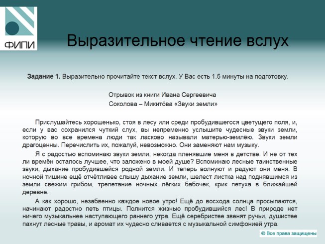 Задание 1. Выразительно прочитайте текст вслух. У Вас есть 1.5 минуты на подготовку.