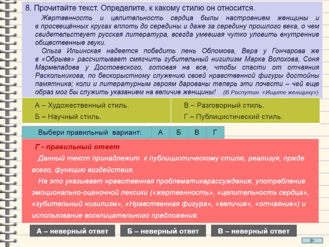 Б – Официально-деловой стиль. В – Публицистический стиль.