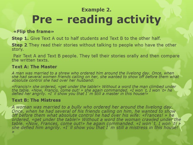 Pair Text A and Text B people. They tell their stories orally and then compare the written texts.