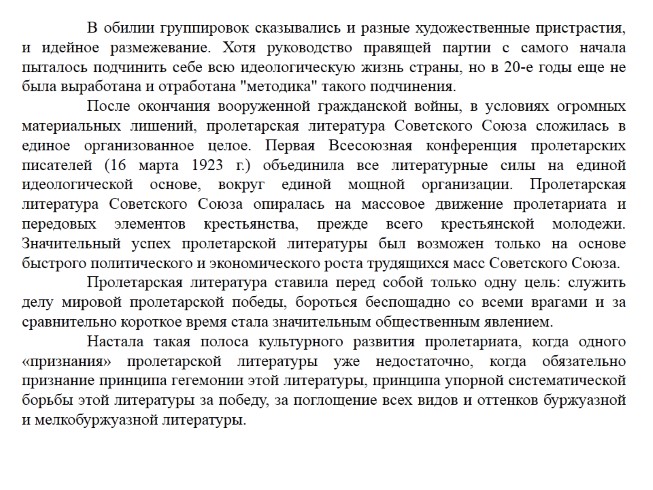Пролетарская литература ставила перед собой только одну цель: служить делу мировой пролетарской победы, бороться беспощадно со всеми врагами и за сравнительно короткое время стала значительным общественным явлением.