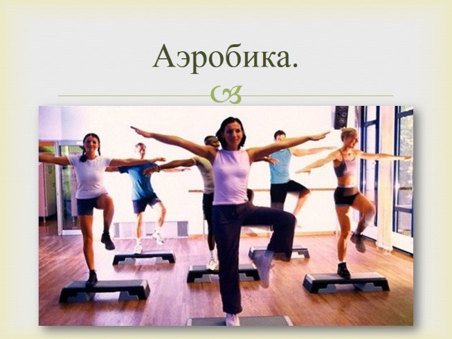 Оздоровительная аэробика - одно из направлений массовой физической культуры с регулируемой нагрузкой. Над разработкой и популяризацией различных программ, синтезирующих элементы физических упражнений танца и музыки, для широкого круга занимающихся активно работают различные группы специалистов. В оздоровительной аэробике можно выделить достаточное количество разновидностей, отличающихся содержанием и построением урока.