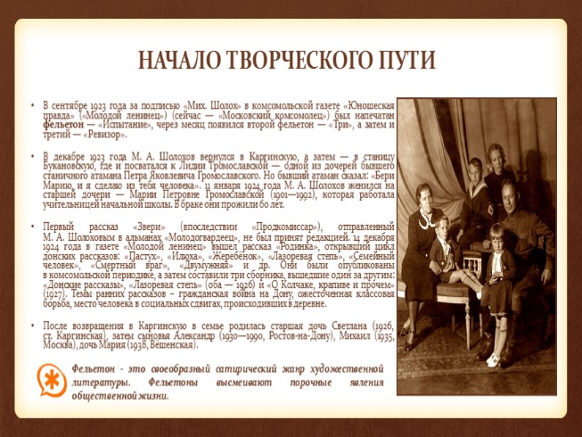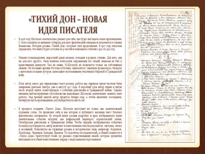 Жизнь и творчество М.Шолохова. История создания романа-эпопеи «Тихий Дон»