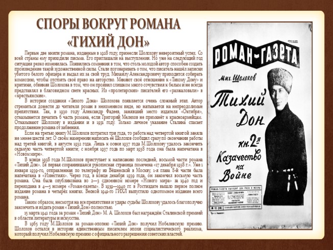 СПОРЫ ВОКРУГ РОМАНА «ТИХИЙ ДОН»