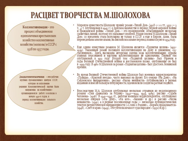 РАСЦВЕТ ТВОРЧЕСТВА М.ШОЛОХОВА