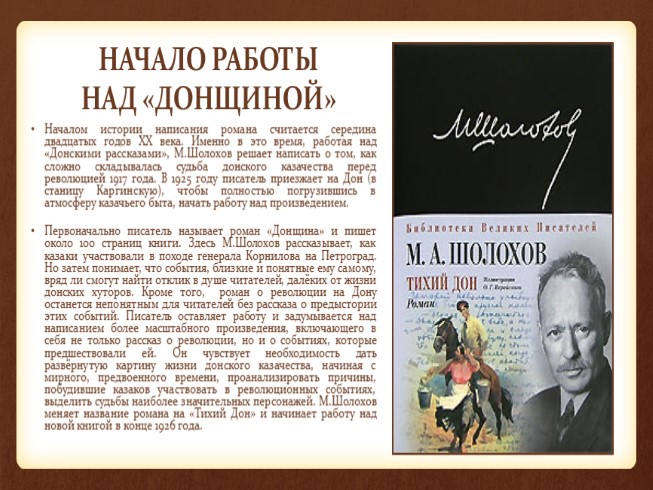 ИСТОРИЯ СОЗДАНИЯ РОМАНА-ЭПОПЕИ «ТИХИЙ ДОН»