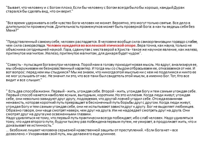 … Безбожие лишает человека серьезной нравственной защиты от преступлений. «Если Бога нет – все дозволено.» Укорачивая свой путь, мы делаем его еще длиннее.
