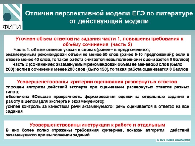 Отличия перспективной модели ЕГЭ по литературе от действующей модели