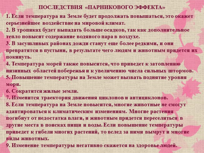 ПОСЛЕДСТВИЯ «ПАРНИКОВОГО ЭФФЕКТА»