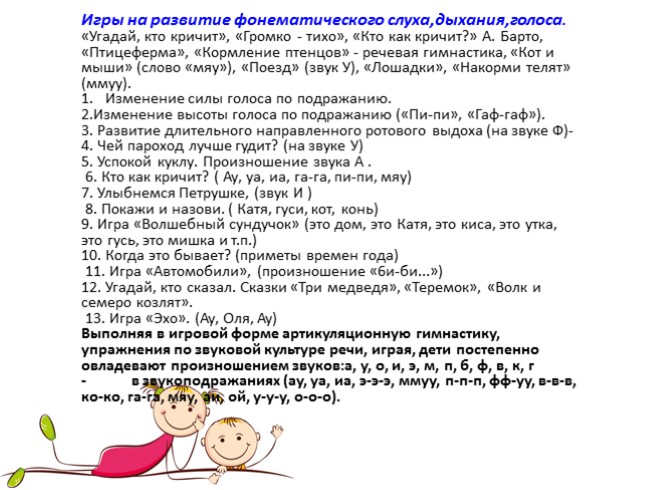 Игры на развитие фонематического слуха,дыхания,голоса.