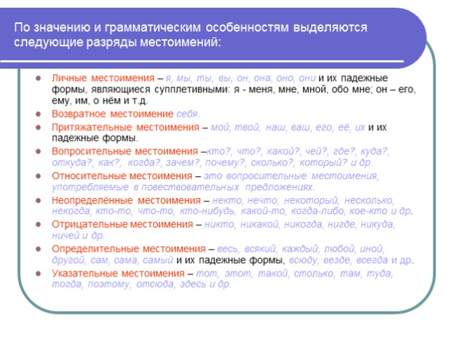 Роль местоимений в речи