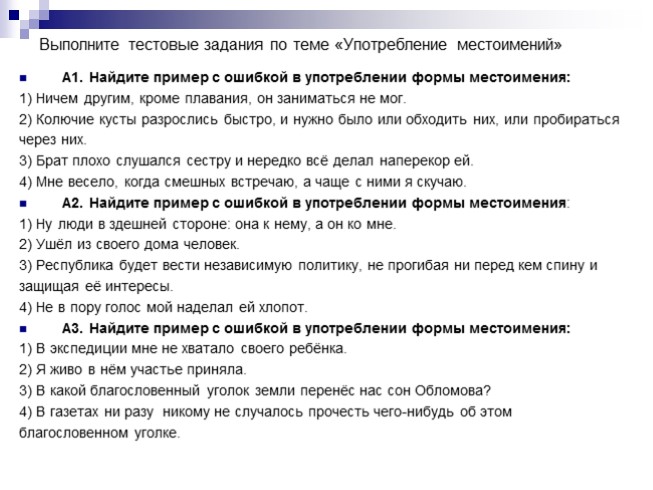 Выполните тестовые задания по теме «Употребление местоимений»