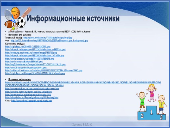 Автор шаблона – Холина Е. М., учитель начальных классов МБОУ «СОШ №50» г. Калуги